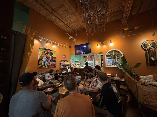 Read moreIt's not an oasis anymore. There were many times after the Oasis opened that I would have given it 5 stars. Amazing atmosphere with beautifully painted walls, high ceilings, a fireplace with floor cushions ( couches and chairs too), and the best coffee in town. It was always fun to overhear conversations about metaphysics, or listen to reggae or folk music), or go to an evening presentation on shamanism. But my most recent visit, a few months ago, was terrible. The walls had been painted white. The owner, Robert, with whom my partner and I had chatted on dozens of occasions, did not recognize us. We got CBD coffee that was bitter and oily (we have the same kind at home, and it's really good.) I can't remember what was on the big screen, but there were 2 audio streams - one was some space age music. That was innocuous. But though we were at the farthest point from the counter where Robert sits, we heard every word of his computer playing ALEX JONES. "Oasis" , it's called. There are signs saying you've entered a calm sanctuary when you come in. Robert (supposedly) is all about One Love and his hippie days. All I got that day was a bitter old man playing the words of another bitter old man. And bad coffee. I know he got divorced at some point (because he talks about his personal business frequently and loudly to some forlorn groupies), and moved to Montana at one point, so maybe he's working through some trauma. Don't do it in front of your customers, dude! My partner jokingly said, when we left, "Hey Robert, we didn't have you down as an Alex Jones fan." Robert: "I use lots of sources. Nobody tells the truth..." and a few other...