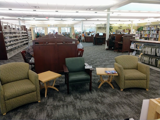 The library has a huge Children's section and a huge collection of books, CDs, DVDs, and audiobooks. Also more PCs for Internet access than I could count. But what really makes this library stand out is its designed eagerness to host people: study and reading and meeting rooms everywhere; tons of opulent, handsome, comfortable chairs arranged in a wide variety of patterns.