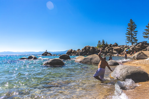 The increased water level in Winter of 2016-2017 has diminished the size of most Tahoe beaches, but Chimney is still one of the nicer small ones on the NV side of the Lake, especially of the "free" ones. Sand Harbor is bigger and easier to access, but much more crowded, and you have to pay $12 park. I prefer free parking and the hike with considerably smaller crowds.