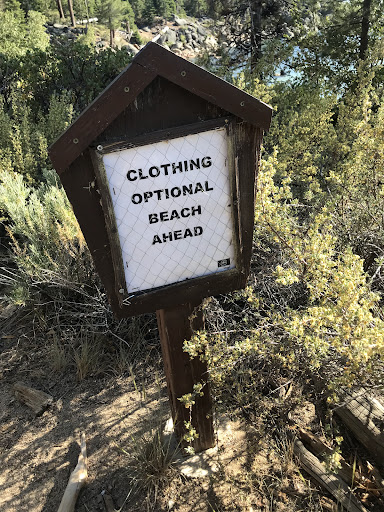 This is an oasis on a sometimes chaotic lake. Lovely people protected by the original creators of this beach back in the 70s/80s. They're still there and they're so very nice, all. They do an annual reunion every third Saturday of August, called Hat Day. Sounds like a big party. The walk/hike to the beach is lovely from the road or the parking spot. There's a quaint mountain creek runnning through the beach that's cool and bubbly. The water is cold but wonderful. Rocks to lounge on. People aren't weird, either. Go here....