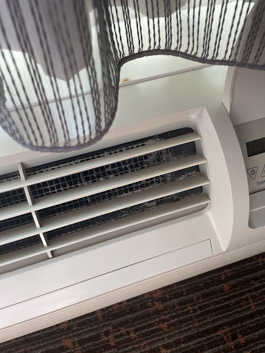 Being at the back of the hotel means the room is next to the heating cooling unit for the building, which is noisy. The room is constructed well enough that sounds from the airport are barely audible, but there is a constant undercurrent of noise coming from the heating and air conditioning unit. After a while it became annoying. To be fair I want to add the room was very clean, and the shower is set up great with five grab bars, two different shower heads and a bench to sit on.
