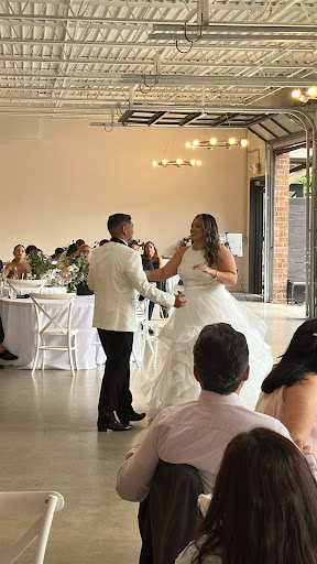 Chatham Station itself is a stunning space with so many customizable options. The venue provides helpful software where you can create a personalized floor planâincluding table and chair arrangements and activity zones. The indoor area is spacious, beautifully lit, and air-conditioned, with a perfect dance floor that our guests absolutely loved. There are two lounge areas we used for the bridal party and groomsmen, along with two full, private restrooms. The outdoor patioâcomplete with string lightsâwas magical in the evening and offered the flexibility of open or closed garage doors depending on the weather.