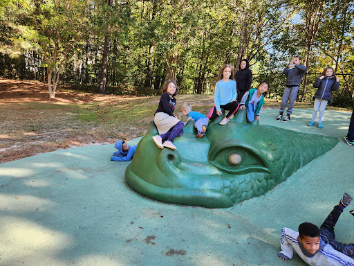 Read moreThe most beautifully landscaped children’s park I have ever been to with whimsical, mythical creature statues. There is a winding sidewalk through the park to four different play areas: an underground serpent play area, two 5-12 year old play areas, and a 2-5 year old play area. Lots of different swings and gliders and multiple things to climb in and crawl through. All of the playgrounds are enclosed and tons of benches throughout. I like that the swings are off to the side of the park so children are not constantly tempted to walk in...