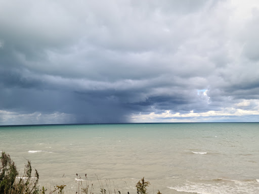 The beach here, though, is one of the best in Southwest Michigan. It's almost completely uncrowded, enormous, sandy, lined with very cool rocks, not particularly painful to walk on, and in no immediate danger of entirely disappearing into the lake unlike many of the other bluff beaches around here. The same obscurity that makes it so great, though, also means that there's no lifeguards and no easy access for EMTs, so be careful and don't test your limits. The only way up and down is a few winding, narrow, very long stairways, one of which has a 10 foot drop to the beach at the bottom. Thankfully though, that isn't...