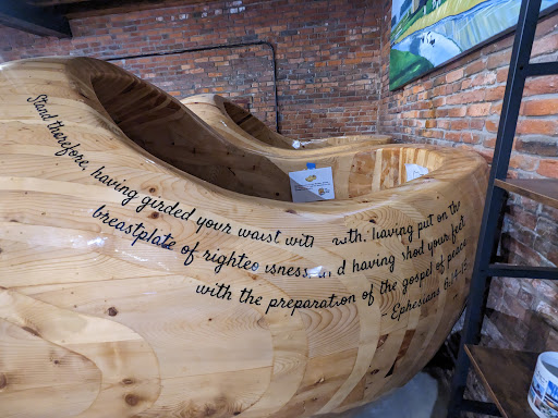 Read moreThe wooden shoes are housed in historic downtown building that dates back to the late 1800s. The wooden shoes gain the world's largest tidal on October 20th 2015 each shoe weighs approximately 2,500 lb. Currently the shoes have gained a large sum of donations due to the coins thrown into the shoes these are then donated to the big thing small town funds to continue to promote Casey and keep tourist areas looking beautiful. 4ft 9in tall. 11ft 5in long. Scripture: "... Having shod your feet with the preparation of the gospel of peace."...