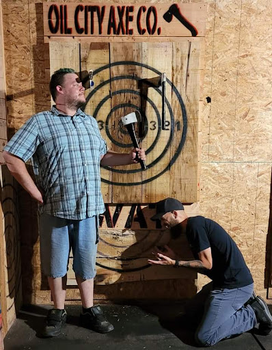 Read moreWe had soooo much fun at Oil City Axe Company! We were celebrating my son’s 20th birthday, but as any parent of an autistic kid knows, it can be daunting to find someplace with the calmness & patience to make some activities a fun experience. We had a couple of autistic kids in the group, & Morgan & Damien were kind, patient, & engaging. Damien is an excellent instructor, & was so awesome with all the kids - the adults too! Lol! The games they have were a blast, & they played awesome music! They even indulged my son with a Rick Roll! 🤣🤣 We will DEFINITELY be back! (Probably an odd compliment, but love the design of the building, & the bathroom fixtures were awesome! Well done!) Thank you Oil City...
