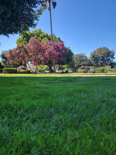 I love this park! So much open space! A lot of paths for bike riding/scooting. A decently sized (and spaced out) play area with 3 play structures. A fountain! A rose garden! A big mansion! A gazebo! Old farm equipment! Covered picnic area! Seriously what’s not to love?! With a parking lot and a bathroom it seriously has it all! 🙌🏼 The biggest play structure is like three stories tall 🦒. There’s a spiral staircase to the look out tower, a spiral slide, a short wide slide, a bridge, learning activities, various ladders, money bars, and monkey rings that lead to the smaller part of this structure. The smaller part has two slides (a sidewinder and a tube slide). There are also steps for this structure. In the same are there are two other stand along play structures with slides, steps, ladders, and learning activities. (One of the structures has one a ladder as access). In a separate section there is a swing set with standard and bucket swings plus a tire swing. This is too far for my comfort to have one kid at the playground and one on the swings. The mansion is so beautiful! There are flowers all around and a huge cactus 🌵. I think there’s a way to get inside for a tour but maybe not right now. Such a beautiful place for a park day and many opportunities for photo ops around...