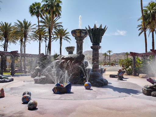 This is been one of my favorite places to go over the last several years. It's located in downtown Cathedral City and is currently undergoing some construction so the water is turned off but when the water is Flowing it's really wonderful and the kids are playing in the water during the summer months and people will lay nearby on their blankets and you know just relax or have picnics. It's right across from City Hall and a theater with around maybe close to 20 screens and a lot of parking and tons of restaurants and other businesses there. The city has done a wonderful job in getting businesses to come into the area and there's still a lot of open land there and I believe it was originally allocated to be a hotel but now it's area that's used for all different types of festivals and other activities in the city. I like taking my dog there for a walk and enjoying the the Green Grass and just letting her sniff everything and she always enjoyed the kids because she'd get lots of attention so it's a it's a special place for the city of Cathedral City and also for nearby visitors and out of town...