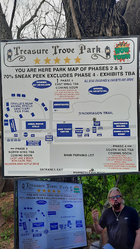 I have a mixed review of Treasure Trove Park. There were some pros, but also significant negatives. The biggest factor compelling me to write a review was the presence of two sick cats on the property that desperately needed vet attention. This alone upset me enough that it brought everything into perspective, and I want people to know what they will encounter here. The Pros: The owner, Tuck, is enthusiastic and proud of his “family” park. There is free bottled water and popcorn. The animatronic dino trail is cool, and there are live animals, bouncy inflatables, go-karts (additional charge), and ride-on dinosaurs that play music. I could see how locals would enjoy coming here for a day to let the kids burn off steam, with most of the negative things about the place going over the kids’ heads. The Cons: The animal enclosures were dirt/mud and rocks. No grass, bedding or straw outside. Lots of animal waste in the pens and walking paths, strong odor, dirty drinking water troughs. We were invited to hand feed the cows, but the employee laughed afterwards when I asked if there was sanitizer or a hand-washing station. Two of the exhibits I just didn’t “get”. One about a guy who made moonshine, complete with a photo of him giving the middle finger. Another about Bonnie & Clyde, with Coroner’s photos of them lying dead. There's a graphic Holocaust exhibit, which is of course important information, but does it belong here? Numerous signs throughout the property with sayings like, “Stop Pedophilia”, “Stop Hate of Asians”, “Stop Slavery of Irish People”. Being a Christian/family organization, couldn’t these be stated in a positive way, like, “Everyone is welcome” or “Protect our children”? It was a weird juxtaposition to see exhibits with scary/adult/depressing/negative imagery in a family fun park. Educational exhibits are great, but the topics they chose to educate about were unnecessarily shocking and in your face. Maintenance: The bouncy inflatables were so dirty that some people opted not to use them, gravel go-kart path has holes and ruts, The Beatles exhibit and other areas were in need of a good cleaning. I know that the owner is excited about continuing to build and collect and add to the park, but there is a lack of maintenance on the things already there. The lady operating the go-karts was smoking a cigarette and walked right up to us smoking in our face as we asked her questions. Need better signage in some places, such as how to use the ride-on dinos and where you are and aren’t allowed to go within the park. We were very careful but got yelled at twice. One employee even moved our golf cart and yelled at us to not park in the path. We had pulled off to the side in a wide gravel area by the Monster Bus where no one else was present. We purposely parked there to stay out of the way, so it was shocking when an employee came stomping over to scold us. Golf cart rental: I paid $49.93 incl tax, but it wasn’t needed. The exhibits are close enough together that you could easily walk. The owner made it seem like the place was HUGE and there was SO MUCH to see, but not really. And finally, the cats. We’re cat lovers and were excited to be greeted by two kitties. However, one of them had gunky/runny eyes and was sneezing, and it kept chewing on a large hole on its leg. You could actually see all the way down to the bone. The other cat seemed healthier but also had a leg wound down to the bone. Come on, Tuck!!! Get those cats to the vet! The sick white one is especially suffering with infection and wounds, not to mention its fur is filthy. Please show some compassion and get them help, or humanely put the poor white one out of its misery. I was so depressed after seeing this that it’s the first thing I think of when I remember our visit to Treasure Trove Park! Are we glad we visited? My teen and I say sure, for the entertainment value that we did receive and for our ability to kind of laugh off some of the shock and gore, but the negatives outweighed the positives for us and we won’t...
