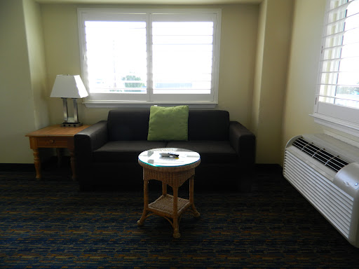 We spent a total of 12 nights here in a king suite which had a separate bedroom. We did have to change rooms for the last 2 nights as we added those on after we got there. Some one else had requested the room we were in and they honored that previous request which we really respect. All the staff, and the owner (who was there most days), were friendly and accomodating. Both our rooms were second floor. Our first room was on the end and had windows in every room that you could see the ocean from. . The room was quiet but there was some early morning street noise. The second room was in the middle of the hotel but you could still see the ocean from the bedroom. The sunset was around 5pm so its not like we would have spent the evenings staring out anyway. This room had less street noise but some outside foot traffic. The rooms are very large and clean with comfortable beds (even the sleeper sofa). With this being a very dog friendly hotel, they do a very good job of cleaning. While the furnishings are older they are well made, we did find the counters a little high. They had a light breakfast (muffins, pastries and fruit) and nespresso coffee in the lobby all day. We would certainly stay again if we come back...