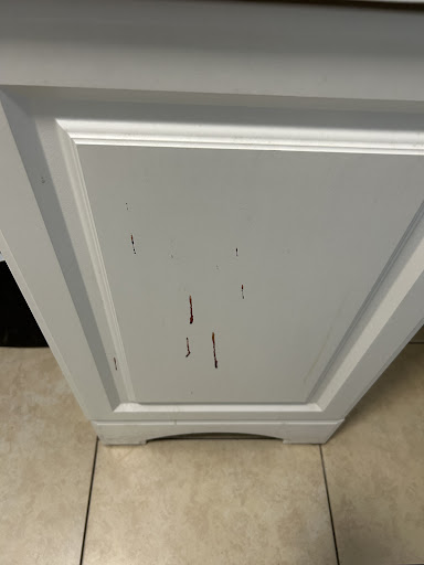 In the gym this week I’ve seen -blood on the cabinet for days -hair stuck to the wall with dirt and grime -dirty toilet -grime on the bathroom doors -trash left on the cleaning stand