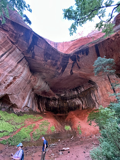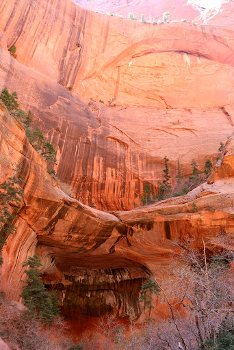 Looking for an incredible Zion experience without the crowds? In this lesser-visited corner of the park, Taylor Creek Trail takes you through a gorgeous canyon with towering red cliffs, repeatedly hopping a small creek, eventually reaching an impressive double arch and alcove. On a Monday in mid-April, we began just before 10am. There were roughly a dozen vehicles at the trailhead. We passed a handful of parties both going in and back, and encountered a ranger at the second cabin. At our hiking, the trail beyond the cabin was only recently reopened post-rockfall, with an "At Your Own Risk" warning. In the area of the rockslide, not far before the arches, there was ample evidence of a recent violent event, with trees snapped off up to 12 feet above the ground, numerous branches down, wood shards driven into the soil, and a complete coverage and blockage of the creek with rocks, sand and debris. We took great care in this area to listen carefully and be on our guard for rock activity. The arches and alcove were one of the most impressive features I've seen. The alcove provides a striking echo, and great acoustics if you're a singer! If you're willing to brave the area and weigh the rockfall risk, the reward at the end is far worth the hike. Our total hike was 5.35 miles, and took us 2...