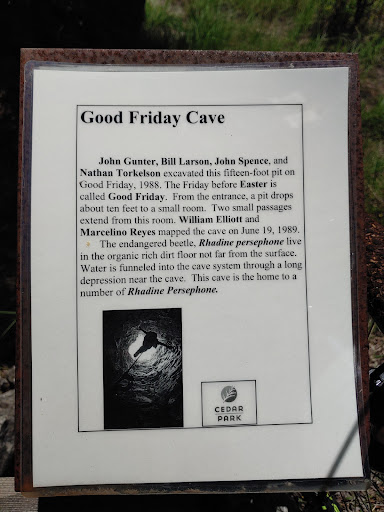 Read moreIf you're new to the area or have even lived here your entire life, this is a hidden gem I'm betting you've not yet seen. It's part of a network of caves in the area and these trails interconnect at least 7 caves that I have found. It's public property. So don't worry about trespassing. Signs stated the City of Cedar Park will be improving upon the trails in the near future. If you're up for a hike or a ride through the woods...