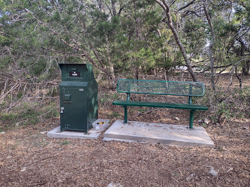 Our visit was pleasant while also a little unsettling. Appealing for local disc golfers. Signage is lacking and there is a small stick and grass "hut" by the river. Not an ideal place to garden, walk, or play a solo game alone at any time of day. Parking appears to be down the road and in the grassy area near the gate to the water treatment facility. It's not the most pleasant smell and the disc golf course wraps around the whole water treatment plant. Disc golf players seem to maintain it well with fresh bark down and barriers created to prevent discs from disappearing. It appears to be a challenging course. There are benches and a trash can by platforms 4 and 8. People also appear to respect the course and the trees.