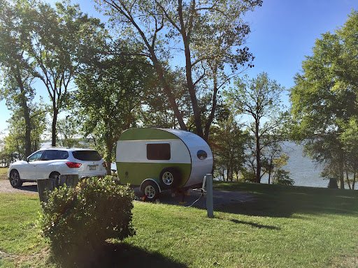 I have a small "tall" teardrop trailer that you can stand up in, and I stayed in the new loop, for three nights at a campsite near the restrooms and more wooded, with shade. My fourth night I moved to a campsite near the end of the peninsula with a great view of the lake; however, it was quite windy, so I was outside less and did not build a campfire.