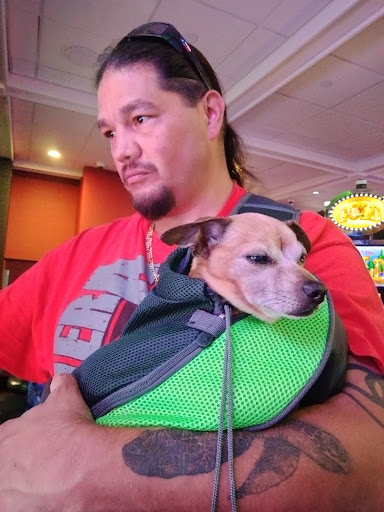 I've been going up to the casinos for years and have never been treated the way I was treated today. We recently went through a horrible house fire and lost everything including our beloved kitty cat. Our puppy is 13 years old and is a seven pound little guy. He is deathly afraid to be alone. He has been clinging to me since this happened. So I have been up to the casinos a few times since this happened. I've spoke to the managers on duty each time I've gone and was told as long as he stays in his doggy satchel and don't bark or walk around he is fine. I was told to day by a manager name Lesley that he was not aloud in the casino. When I tried to explain our situation I was asked who I spoke to. Not knowing his name she told me "oh you don't know because I never spoke to anyone." Impling that I was lying. She was being sarcastic and mean. The way she was speaking to me was as if I did something very wrong. After I told Lesley the person I spoke to was white male with glasses she turned and rudely said"I guess he can stay." Again she was very unprofessional with her tone and body language. Feeling upset that I was just rudely spoken to and embarrassed in front of her employees and a room full of other people playing. I decided to go outside feeling unwanted and upset. It was raining and hailing outside. I was told by Lesley...