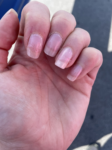 Read moreI took my friend here because it was nearby and had positive reviews. My friend got a gel manicure and pedicure but I asked for regular because of the bazillion pedicures I've had in my life, the polish has never, ever chipped off of my toe nails. On my fingernails the polish does eventually chip but I didn't want the long term commitment required by gel. The lady doing my nails started off by telling me that a glitter ombre tip wasn't possible with regular polish, only gel.... Since I've had it done at other places many times, I knew that was false but I figured she just didn't know how to do it personally. While she obviously could've asked someone else, she didn't. So I said okay "just do pink instead." Then I asked her to be gentle trimming my cuticles. She asked "you no want trimmed?" I replied "I want them trimmed but not aggressively, just the parts that are peeling." She finished my nails in less time than it took for my friend to get her cuticles trimmed! I even commented, "wow that was quick!" but my nail tech was already packing up, so I shrugged it off bc the only reason I went was to accompany my friend, but when we get back to the car I notice my cuticles are still just scraggly and peels as when I went in! Two days later my nail polish is CRACKING across the middle of my nails! I have never seen that happen before, let alone 2 days after a so-called professional manicure! (pics attached; you can see it on my index finger and starting to lift up on my ring finger) The next day, a full 3 days after my pedicure, my toenail polish started flaking off! I asked my friend how her gel polish was holding up and she said it was fine. A regular manicure and pedicure aren't that expensive but I am still appalled at the lack of longevity from this establishment and I won't be returning. Update: My friend’s nails still look good so I guess it depends on who you get as a...