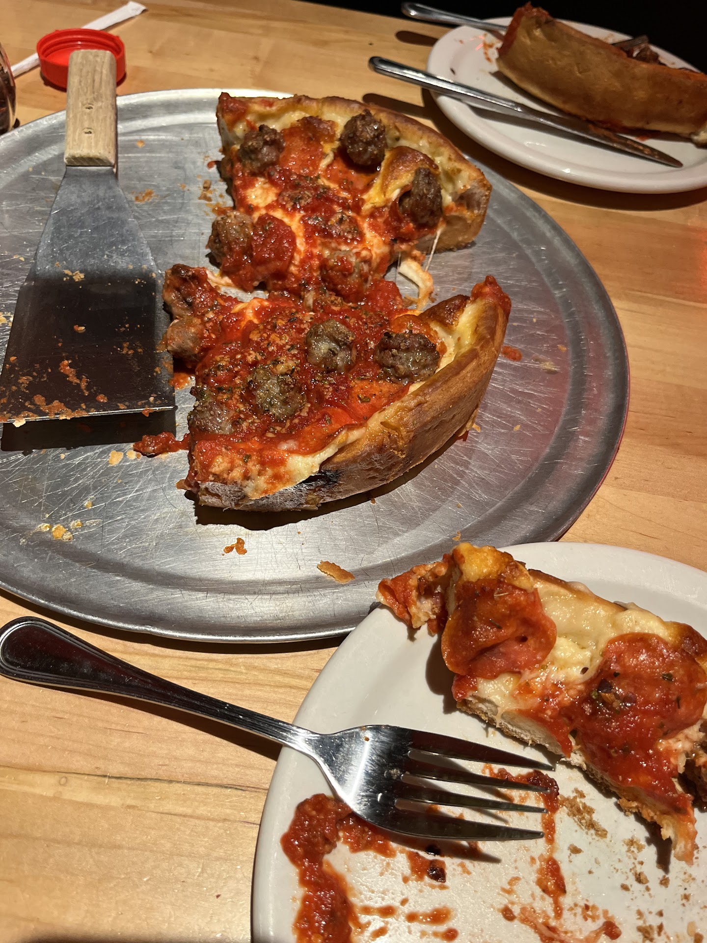 Read moreOn a cross country drive my husband decided it was worth the added drive time to go to Champlain for Papa Dels pizza. He remembered the pizzas fondly from his undergrad days in the 70's. We looked up the website which recommended allowing 45 mins for pizza cooking time for takeout. When our GPS showed us to be 50 minutes out we called in our order. I asked the woman on the phone if they had a pizza with a good variety of toppings...something like " the works " or the kitchen sink. She said "yes", I asked her what the toppings were. Instead of reading the actual toppings that would come on our pizza she read the list of every topping option available. I started removing toppings and then she said she read the wrong list. We started over. I asked for anchovies on one half of the pizza. She said it would be an hour or so before it was ready. We drove into Chaplin went in to pay for the pizza. The woman at the desk had extensions that went nearly to the floor which she kept touching and I was immediately grateful she was not working in the kitchen. I paid and tipped and was told it would be another 20 minutes before our pizza was ready. We drove around campus for 20 nostalgic minutes then returned to the pizzaparlor. A pizza was brought out to the warmer. The girl with the extensions asked me my name I told her my name she handed the pizza to me. When I got to the car I saw that the pizza was not the one we ordered. I took it back. Seriously, she took the pizza and stuck it right back into the warmer. She went into the kitchen for several minutes and returned with our pizza. Given the smirk on her face I was afraid to eat it. Back in the car we encountered a hot, soggy, dripping , runny mess (with no anchovies whatsoever). My husband declared it used to be better or maybe beer made it seem better. After trying to eat a slice we tossed it in the trash and continued...