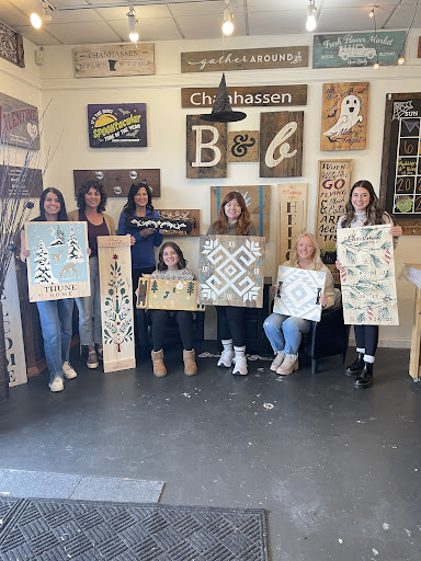 Read moreSoo fun! It’s a great experience from start to finish! You get to select your own piece to create, allowing you to find the right thing for your space that you’ll actually WANT to keep when you’re finished! The ladies (and gentlemen—Justin) instruct while managing the different skill and engagement level of the class, allowing people to feel comfortable to go at their pace and assisting when needed. Cannot wait to go back for more classes! Would be a great ladies night, bachelorette party, or work party! Great parking and accessibility at the Chan...