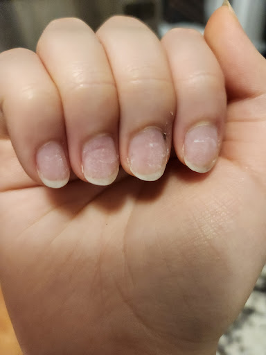 Read more2.5 stars. I originally was going to post 4.5 when I got my set done but upon coming back a few weeks later for removal, the guy working there removed my extensions by grinding down the surface and prying the acrylics with a nail extension. As in he used a nail extension to scrape under the acrylics and pry it off. This way to remove extensions is totally not okay and damaging to the nail plate (it can even losen your nail). With the amount of force exerted to pry them off, he was struggling and even told me to tell him if I feel pain from the process. Totally not acceptable! That shouldn't even be a thing and the fact that it may hurt to the point he told me to tell him if I do is just red flags all around. Removing extensions shouldn't have hurt that much. If I wanted to remove them like that I would've just done it at home, but I came in because I wanted a professional to do them so I wouldn't damage the natural nails...now my nails are damaged 🫠 Photo attached is after I tried to do some damage control because it was way worse when I got...
