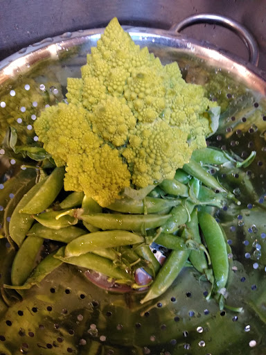 Very good! I went for green vegetables and found exactly what I wanted! Sugar snap peas and Romanesco broccoli.