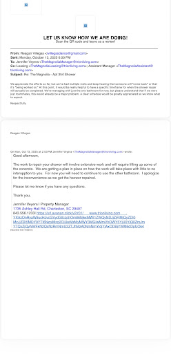I moved from Florida, consulted with an agent for months who promised me a 2 bedroom renovated townhome for around $1200 a month. That was my budget; I had been looking at apartments all around Charleston but settled with magnolia as I was promised the most square footage and beautiful apartment for my price range. I attempted to get a live tour, but I never would be sent a link/no one would give me a live tour. I brought this to the agent, Caroline Chapman-Pierce and she told me to just utilize the website’s virtual tour as it was exactly what the unit would look like. Long story short I moved from Orlando to charleston, the unit they had me in was disgusting. It was a first floor apartment that hadn’t even been cleaned l, much less renovated, much much less a townhome. I went to the front office and showed them all the emails and documentation where I was promised and signed a lease under the belief that I was going to be in a renovated townhouse. I basically was told “Oh, Caroline messed up and she doesn’t work here anymore, so you can take the unit we put you in for the price quoted, or pay $600 more for what we told you you were going to get.” The way my employer works, i did not have the time to find anywhere else to live and was forced to pay at least $600 more to move me and my children into the unit we were promised. To be honest our belongings didn’t even fit in the unit they tried to put us in, it looked like a roach motel and the people upstairs played music so loud I could not sleep without having to knock on their door and ask them to be quiet, as I was 7 months pregnant. Due to financial strain I have had to take our multiple loans to keep up with the rent and I have not been able to get SC plates and renew my tags. Even thought the magnolia/trion has my tags on file I have gotten threats to have my car towed because of my plates, no mercy allowed due to the fact that my rent is 1/3 more than what was agreed. It pains me to leave this review, and I have not so far because the kind people that now work at the office and the funny sweethearts that help with maintenance bring happiness to me and my daughter’s lives. It’s not their fault I have no door on my mailbox and I have packages opened and pillaged, it’s not their fault I was threatened to have my car towed (as far as I know) so I have to park up the street and walk home, and it’s definitely not their fault I was ripped off and swindled. I fault the company, not the current office and/or maintenance team. They are what makes this place...
