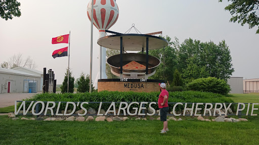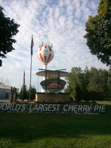 As crazy as it might be, this could possibly be the highlight of my Michigan road trip. Just happened to look over and see this coming into town. I was just tickled to see it. I've been to Casey Illinois where they are putting together the world's largest everything, but I don't think they are ever going to outdo Charlevoix with the world's largest cherry pie....