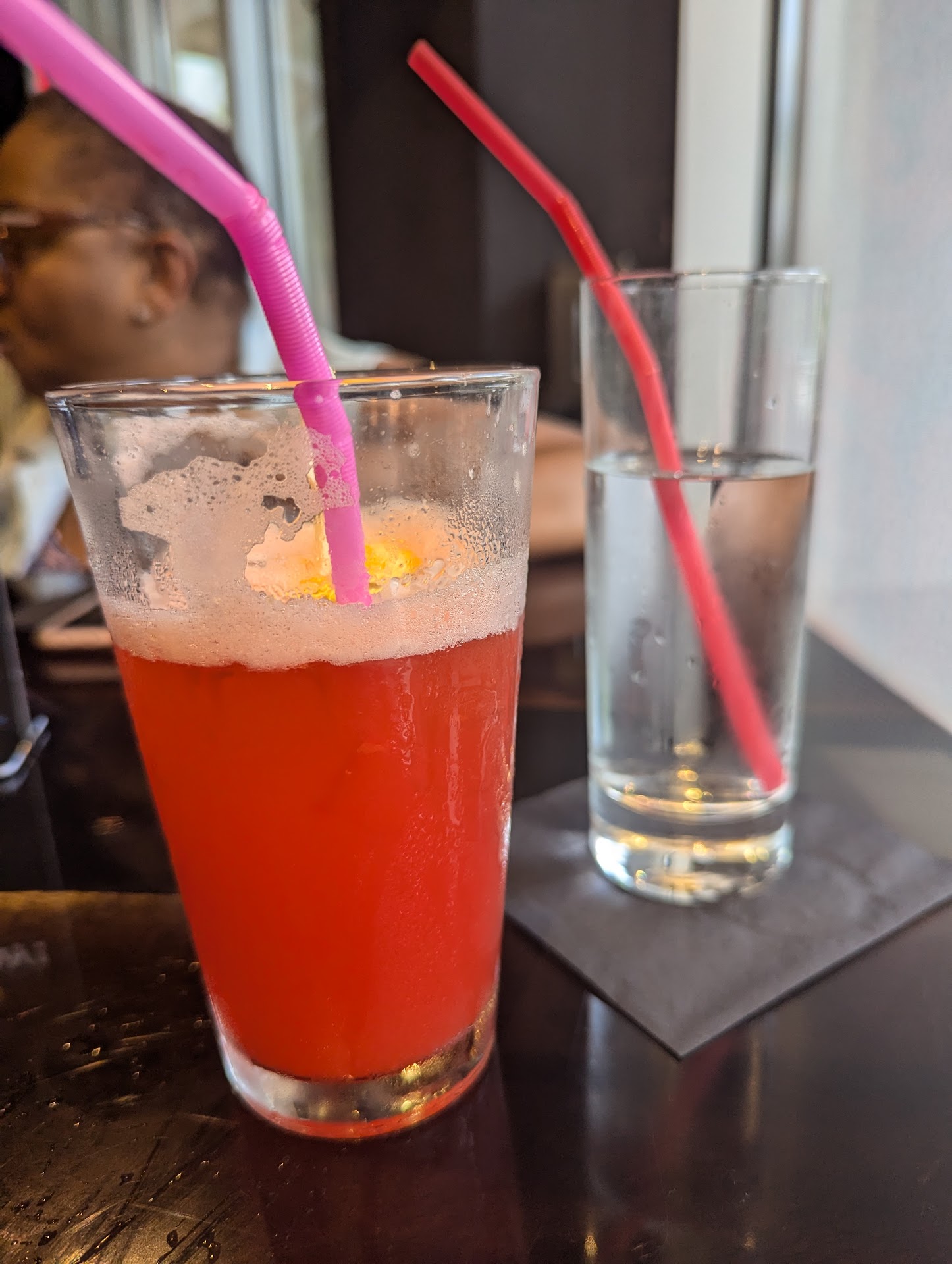 As for the movie, I liked the auditorium and the screen ok for a dinner theater, it's pretty routine. I thought the volume was too loud though and it seemed like it was not really surround sound. Felt like it was all coming from the screen, or from the front. The seats were ok but a little awkward with the tray table that is kind of small and doesn't swivel very far. Get an aisle seat if you need room. There is only one drink holder, it's on the arm rest and is lower, offset down and right of the tray.