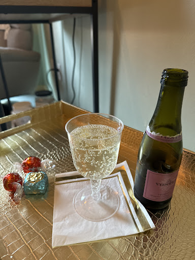 Lastly, the refreshment options felt limited and thoughtless. Offering only champagne and chocolate doesn’t feel inclusive or mindful in today’s hospitality environment, especially when guests may not drink or prefer plant-based options.