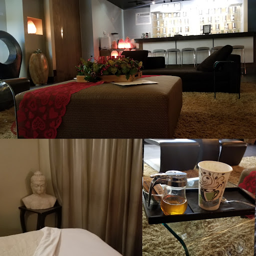 A friend invited me here to unwind and get pampered. We went early on a Sunday morning. Upon entry the atmosphere was very relaxing and welcoming. The lighting and music was perfect. Check-in was brief with a one page form. I really liked that it included a question regarding whether or not we wanted a massage with or without talking. We were offered tea, wine, and water. We purchased the Royalty experience spa package. We actually thought we would be in the same room throughout our services because we scheduled it together. Unfortunately, that was not the case for any of our 3 services. Nonetheless, we really the experience. The staff was extremely courteous and friendly. The sugar polish and body wrap was our first service. Karen was very knowledgeable and helpful. It was a messy experience but the results were amazing! There was only one shower available. So our start time was staggered. While we waited for our next service to start, massage, we sat in a very small waiting area that was basically located in a hallway. The were 2 chairs with a small table where we sat with only a robe and flip flops on. I had no place to set my belongings that I carried in a loaner signature tote bag provided during my first service. The area was divided from the main entry by hanging beads. We could see other guests as they arrived and were guided to a room for their services. We had tea and wine as we waited. My massage was performed by Laken. Before starting, she asked about issues I wanted addressed and the amount of pressure I desired. She did an amazing job. For several days I didn’t experience any pain in my shoulder and lower back. Lunch was included in our package. Our lunch was in a room designated for couples service. There was a small tall table with two chairs but there was only room for one person to dine comfortably. So we stood up the entire time. We ordered a chicken Caesar salad. It looked great but we couldn’t eat it because the salad was too cold and the chicken was frozen. We had it packaged to go and we enjoyed tea and conversation as we waited for our next service, a signature custom facial. At this time, I still had a robe on but my friend was completely dressed. Unfortunately, she had to get undressed again above the waist for her facial. Laken also performed my facial and, again, did not disappoint. In the end, our skin felt amazing, our faces were glowing, and our bodies were relaxed. We received a refund for our lunches and 20% gratuity was included with payment. Overall, I really enjoyed the services. The accommodations during our wait time and lunch leave a lot to be desired. However, we both agreed it was not a deal breaker and we would return. Next time we will do something a little different so that we can possibly enjoy each other’s company throughout the experience. I was torn about the amount of stars to give but settled on 4 because my skin still...