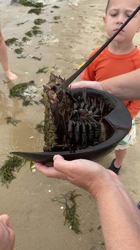 Family of 5 Review - Go for it 👍🏼 Tuesday July 9th, arrived just after 10 AM. Paid $20 to park and found the lot mostly empty (could have been due to the foggy weather). IMPORTANT - ONLY PORTA POTTIES. Bit of a trek over pedestrian bridge with crabs 🦀 under it and out to the beach front. Lifeguard on duty. Bit of seaweed near the lifeguard area - 10ft out in the water and you are mostly clear. We had decent waves - likely due to the breeze (really comfortable). Walked down to the sandbar where we found many crabs 🦀, hermit crabs, and 2 horseshoe crabs - one was huge! Kids loved catching the crabs. Made our way up to the pedestrian bridge later in the day to catch the crabs in their holes - some with larger pinchers. Pro-Tip: Use a sturdy shovel to dig around the holes and you will find tons of the crabs! Kids dug a huge fort at the crest of high-tide - not much tide movement on the sound side. Didn’t go to the snack shack. Beach never filled up - stayed until...