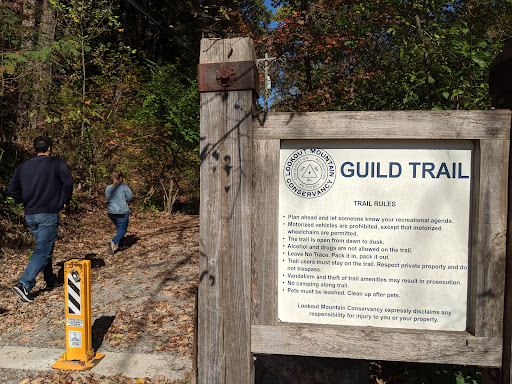 It's a pretty trail. Very straight-forward, well-marked, and well-maintained, but definitely not my favorite. I've never been out farther than 5-6 miles from the trailhead. (You can go much farther than that.) Great views of downtown Chattanooga in the first couple of miles. If you aren't used to a fair amount of elevation gain (I usually gain around 600-700ft in 10-12 miles and am used to running with much less), it can be a bit challenging. Also, have heard some horror stories from friends that have run here and those who know Lookout Mountain better definitely advise against running alone on this trail. All that said, I often would choose elsewhere to run or hike, but I don't mind the Guild Trail if I go with a...