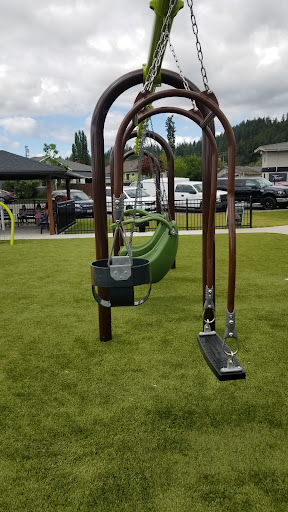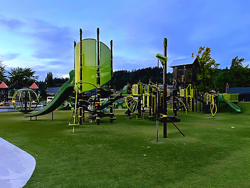 Summary: One of the best kids playgrounds I have ever seen. Parking can be a challenge on some days when the weather is nice and the park is full or when there are baseball games being played at the adjacent field. There are covered areas and tables for gatherings and parties (you can also rent out one of the small buildings near the street for kids parties). Fun fact: the picnic tables were built by the local Boy Scouts as a community service project. Kids of all ages can find something to do here (although kids older than 12ish may get bored). There is a small area with smaller playground equipment and features for little little ones and bigger equipment like a zipline for taller/older kids (little ones can use it to, they will just need help to get into the seat (plastic disc attached to a rope) and a push to help them away and likely to return back. There is also equipment like different tandem swings for parents to swing with their kids or carousel-like toys that the kids and adults can help push to spin them for the other inside. All features are self policed, so it can be a good opportunity for kids to learn sharing whichever toys are being used (usually the zip line and a fee of the slides on the tall play structures. There is a sidewalk that runs the inner perimeter and it can be used to teach kids to roller skate or just do some laps while the kiddos play). Plenty of seating off to the side (covered) or at the picnic table just outside the fence, or at various points where parents sit and watch their kids. There are 3 entrances to walk-in and an adult of average height should have no problems seeing the entire park and the exits. Parking garage is availible along the curb, angle parking on another side, and a small parking lot off to the side. The turf is artificial and quite soft (No skinned knees and palms here). Summer months can be quite hot here making the slides and other equipment very hot as there is little overhead protetion and you may want to walk next door to the splash park (this is free, the swimming pool area is not). Bathrooms are availible just outside the park fence. All are welcome, just make sure to appreciate that this community and charity-built so all should bring their manners and prepare to watch your kids...