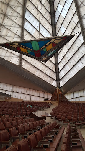 Read moreIf I were not lucky enough to meet this lovely couple when I were to leave the building after finding out the entrance being locked, there’s no chance that I went back again and finally had a full tour inside the stunning building. Completely different to its solemn and solid roof that is made of massive steel beams and opaque plastic, the soaring sanctuary, diamond-shaped seating plan, dazzlingly colorful, triangular stained-glass “light basket” are far too majestical and as if the congregants were “resting in the very hands of God”. This is the one spot that almost lifted the whole...
