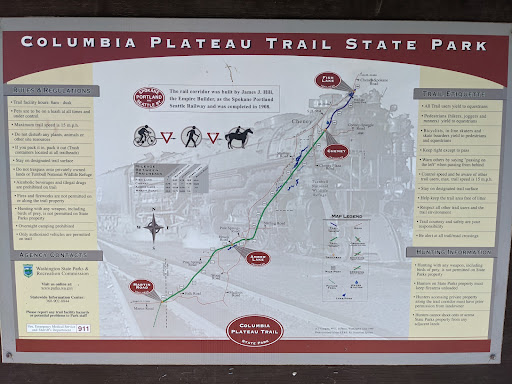 Read moreGreat outdoors trail access point. Plenty of paved parking. Vault toilets. Covered picnic area. Trail maps posted are also handy. All this is right next to the current train tracks, so when it came rumbling and roaring by, it was quite loud, and might be dangerous for kids and dogs. That said, there was plenty of heads up before it arrived. We used the trail to cycle south, which is paved for 3 miles, roughly. We then kept going on the Columbia Plateau Trail until we reached Amber Lake, which is 16 miles from the Fish Lake Trailhead. Riding through the Turnbull Wildlife Refuge was...