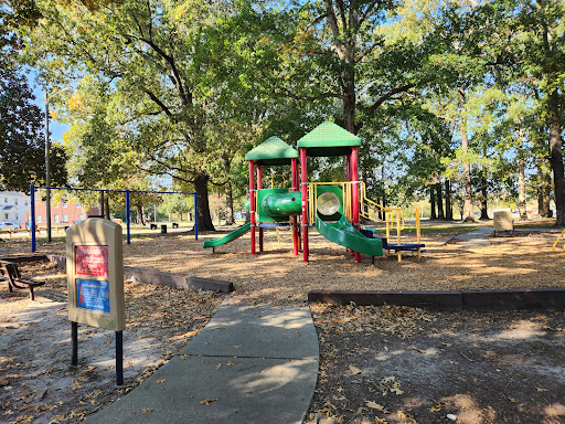 Read moreIt's a pretty park with a pond and open grounds. There are covered pavilions and benches close to the playground area. The park has separate play equipment for toddlers and older children, which is really nice. The walking path is lovely as you go through the trees and over the bridge. Unfortunately, I visited on a weekday morning where there were several homeless people in each pavilion and hanging out on the swings smoking. There was a lot of little litter on the ground in the playground area, too. There are no bathroom facilities beyond a not so clean port-a-potty. If you bring a blanket for the grass, make sure you bring a bag to put it in afterward because there is goose poo everywhere. There's a little parking area at one end or you can park closer to the middle with...