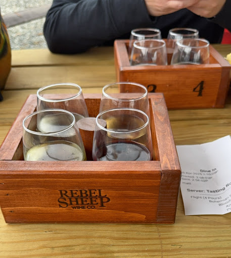 Read moreThis place is absolutely amazing! 5 âïž Not only are they a small winery nestled in morris county, but they also make, serve and sell hard cider and homemade sangria. They have a very rustic feel in their tasting room and plenty of outdoor seating. From the moment you walk in you are greeted with a warm smile and hello. The girls who took care of us (Chris, Abby and Andrea) were very friendly and knowledgeable. Almost wanted Chris to pull up a chair and join us. Outside snacks are welcomed but you cannot leave without trying the âgrazing boardâCheese, Crackers, cookies, chocolate, chocolate covered pretzels and their homemade strawberry jam. (Yep, bought some of that too) This place has it all and then some. Cannot think of a better place than to have celebrated Our wedding anniversary. Thank you Rebel Sheep Winery. ...