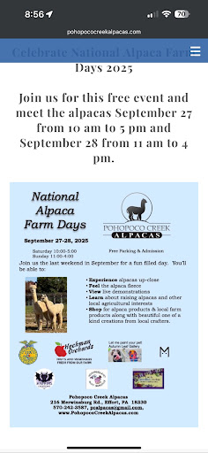 Not a friend to the disabled! We managed to find this place through the visitor center near our resort. I am legally blind, and I went on their website with my assistive technology and purchased a ticket for the Pohopoco Creek Alpacas. I was excited to go because I love animals and I thought this would be a nice thing to do before leaving the Poconos for the summer. When I purchased the ticket, I purchased it for myself, although I do travel with a guide to help me walk around, Not participate. To my surprise, soon after purchasing the ticket, I received an Email from the owner asking if I only purchased One ticket. This was completely unexpected. When I wrote back that, yes, as I am blind, I purchased one ticket and that I’d have a guide with me, the owner responded that the guide would have to purchase a ticket As Well. When I inquired if I could purchase a half price ticket or reduce price ticket as I am blind, she responded by saying NO, and she was canceling the reservation. The owner never gave me a chance to accept the reservation just for myself or amend it in anyway. Additionally, she wrote back that I would not enjoy it anyway. Who is she to say or know what I would or would not enjoy! This is very poor Customer Service, and not a very nice way to communicate with someone who is disabled. I am sorry, but I would avoid this place at all costs, if even for the Incredibly Poor customer service, or...