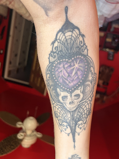 I lost my daddy in 2022, he was one of my life lines and a piece of me died the day he left. I knew I was going to get something to memorialize him and our relationship, yet I didn’t know where to go to get exactly what I wanted as this was going to be my most important tattoo and I needed it to be nothing less than perfect (I have like 26 already). I chose Tattoo Mafia and Lisa due to the shops awesome reviews overall and her portfolio. When I met her for a consultation, we instantly connected and she told me, with 100% confidence, that she could give me exactly what I was looking for…and she did not disappoint! After my piece was completed and I got in the car to go home, I literally cried. It was finally completed, it was perfect and my daddy would have loved it. The skull is for our love of horror that we shared. The amethyst heart is not only his birthstone, but also represents the purple heart he received while in Vietnam. And the beautiful, delicate filigree Lisa so effortlessly created, added that final touch of royalty to the piece because I was his princess. Thank you, thank you, thank you! I am going in another month to get my vampire pinup girl with Lisa….cant wait! Oh, and I live in New Jersey so it’s a bit of a drive. Well, worth the time spent, will not go anywhere else. Clean, comfortable, staff is fun and inviting. Love me some Tattoo Mafia.