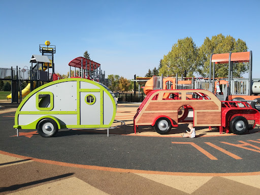 Read moreIt's the newest party in town which makes it be super nice! But they should have done better planning as to the design of the park in functionality. It's beautiful but hard to use everything. The rolling slide doesn't have stairs up to it so the kids climb up the hill and have made the mulch go away. Also the entrance is a bit odd so usually people walk across the mulch instead of going to the sidewalk. It's a little bit hard to watch your little kids because the park is so big and on two levels. I love the giant rectangle rocks that double as extra seating when the few benches are full. The merry-go-round was a little dangerous originally with the top pinching kids but they have done removed that so it's way better now! Even though kids get flung off every once in a while still. It only holds about 8-12 kids. There are a great variety of things to climb on and play with, even for bigger kids...
