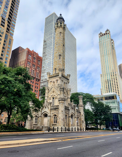 Read moreThe Chicago Water Tower is a contributing property and landmark in the Old Chicago Water Tower District. It is located at 806 North Michigan Avenue along the Magnificent Mile shopping district in the Near North Side community area of Chicago, Illinois in a small park, the Jane M. Byrne Plaza. The tower was constructed to house a large water pump, intended to draw water from Lake Michigan. Built in 1869, it is the second-oldest water tower in the United States, after the Louisville Water Tower in Louisville, Kentucky. The Chicago Water Tower now serves as a Chicago Office of Tourism art gallery known as the City Gallery in the Historic Water Tower. It features the work of local photographers and artists, and...