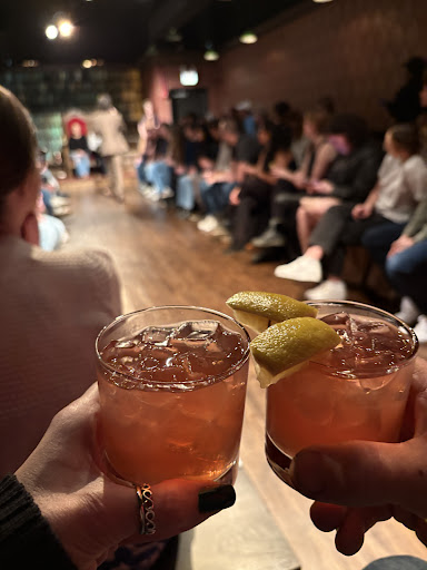 What a welcome! Being as we were walking in right at 7pm due to our uber being 23 minutes late picking us up. We felt so bad walking in but were greeted so warmly by the staff!! As soon as we walked in we were greeted with a welcome shot. It was the signature cocktail. It was delicious. Homemade lemonade, makers and blackberry liqueur. We purchased the balcony seats which were the cheapest but honestly there wasn’t any bad seats. I originally wanted to purchase the throne seats which was $500 for two people and it came with all the perks. My husband and I drove up from Louisville KY for a 4 day stay for St. Patrick’s day so we booked quite a few things already so we skipped those seats. However, no one bought the seats so they auctioned them off which was pretty cool. They went for $120. They had a nice drink menu and light snack menu. We ordered 2 of the signature cocktails ($28 total) 2 waters (free) and the caviar charcuterie board ($28). It was delicious! A little pricey on the snacks and drinks so if you have dinner reservations at a pricey place after (like we did) then I would suggest having a light snack and drinks before the show at a bar near by. The show was beyond words! A perfect mix of Shakespeare and improvisational. My husband and I were cracking up. The actors are so talented and quick witted! Really enjoyed the audience participation. We attended the 7pm show. Which was perfect because we were out in time to get to our dinner reservation at Sushi-San. Which is a must!! So, if you are a Shakespeare fan or don’t even know that much but love comedy, quick wit improv done by extremely talented actors done in an entertainingly high energy way then this is the show for you! We will definitely go again as no two shows will ever be the same! Such an incredible experience and the venue was very nice. As you can see from the pictures you are basically in a circle and the actors are in the center. It makes for an immersive atmosphere. All of the staff were extremely friendly and helpful. I wanted to know what kind of caviar I got and she went back and got the brand and name for me which was so sweet. Bravo Drunk Shakespeare Bravo!! 100 out of 10 (lol) would highly recommend this...