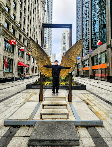 Read moreThis is a nice plaza. I went here while visiting Chicago and was satisfied with my experience. This plaza is a small, rectangular space wedged between two buildings, and it has a flag of every country in the Americas, hence the name. There’s also a small garden, a pair of angelic wings you can take a picture of yourself with, and a statue of a prominent leader of Mexico’s independence Mexico that was gifted to the city of Chicago. This plaza is right in Michigan Ave and is connected to a pedestrian bridge that that takes you to the next street over. I gave this plaza five stars because it’s a nicely decorated plaza with a flag for every country in...