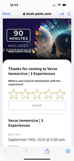 Read moreCame in vacation last week and it looked really cool. And it was! Definitely unique. I did however have a few issues that really should be fixed. We paid for unlimited time at 12pm slot. When we arrived we were told there was an hour wait..so why are there time slots instead of saying first come first serve. This frustrated me as we were on a time table. But we waited got some lunch. When it was our turn we all started and it was fun after about 45 minutes one of the workers told us we would have to give up our headsets soon as there were other people waiting. To which I argued with him that we paid for unlimited time and that's what I expect. Another worker saw this and tried to back track saying they just needed to charge the headsets which wasn't really what 1st guy said. I was about to demand a refund as I paid alot and was only getting 15 minutes more than the cheapest ticket. But they let us keep the headsets after that. Therefor I did not. While I enjoyed the experience it definitely was frustrating for these issues. So if you book a time don't expect to play right...