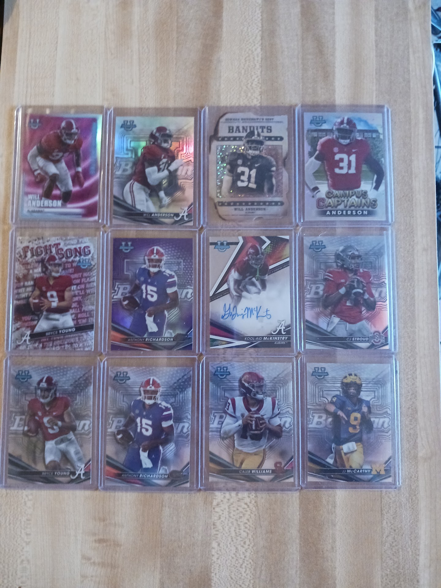 Ā Ā Ā Read more2022 Bowman U Best mini box for $60 is just the most amazing guaranteed bang for your buck I've ever seen. Absolutely loaded with college stars and 1st round nfl draft picks from this season and last. QBs galore. 1 auto (Kool Aid Mckinstry) and 1 numbered (Anthony Richardson of 250) in every box. All of these drippy pulls and more in one mini box. Thank You SN...