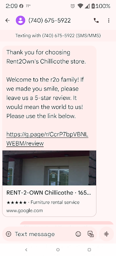 On 3/11/2023 in the morning, I went to fix breakfast for my family and smelled electric. I unplugged my stove and pulled it from the wall and noticed my wall looked to be charred and started to freak. Anyway I called my landlord/electrician to have him come take a look to make sure that our electric was good. He showed up kind of late around 6:30pm or so and come to find out it wasn't our electric it was our stove, the wires were very loose and the whole back part was melted where the wires go in. I freaked out, but called Jennifer Easter, manager of rent 2 own here in Chillicothe after hours, on a Saturday night and this wonderful lady went and got me a brand new stove and delivered it to my house. Her and her husband Sam who also works at rent 2 own brought it in and hooked it up and made sure that everything was in working order. They did not leave my house until almost 9pm. They honestly didn't need to do that, I told them that it was okay and that I could wait until Monday morning for a new stove, but she insisted and told me that I could not go without a stove all weekend long. She really made me a priority and made sure that we were all safe and well taken care of!!! I love the Chillicothe Rent 2 Own. They are amazing people. Thank you guys so much for everything...