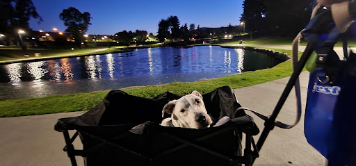 It's a sweet little park with a small playground, paved walking area, covered tables with trees and plenty of grass. Lots and lots of ducks. Saw some turtles at dusk. Seemed a popular spot for influencer or teen photos. I wanted a park to take my hospice dog to, that had shade and a paved area for the wagon in case he was too tired. Just wanted to sit in the grass with my dog and watch the ducks and that's exactly what we did. A few resident geese that didn't seem to mind us at all, the ducks don't seem afraid of very much but will get out of your way. Very cute to watch them waddle and tuck in for the evening. No bugs, park seemed clean, didn't see any trash or uncleaned anything. Lots of people power walking in circles. Decently lit. There are two parking areas one on each side because the west side one is very small. Over all a sweet clean little park with shade and places to sit of all kinds and just,...