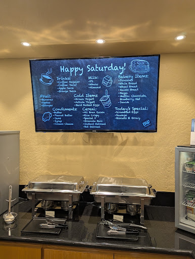 The motel’s complimentary breakfast was one of its stronger points. While the hot food options were somewhat limited, there was a good variety of choices overall. I particularly appreciated the inclusion of healthier items like probiotic yogurt and better-quality cereal, which added a nice touch to the breakfast experience.