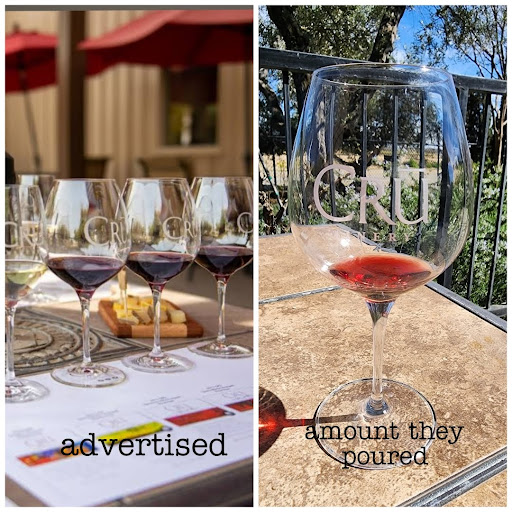 I've been to umpteen wineries around California, the US and internationally. This winery gives, hands down, the stingiest pours I've ever experienced. I could maybe get two sips out of a pour. And yet this tasting was $15 for 4 wines, but if you're a party of 6 or more, the fee for the same tasting goes up to $20 per person! Since when does pouring maybe a half ounce into more glasses warrant everyone in the party being charged $5 more bucks a piece? It feels stingy.
