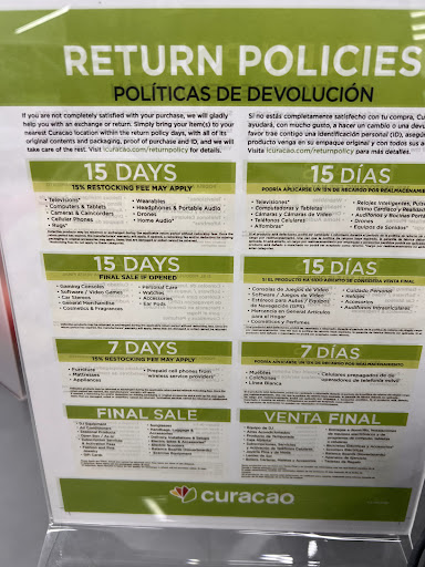 Ā Ā Ā Read moreThis store is beyond AMAZING!! 5 STARS without any doubt. I came in 10 minutes before they closed. I was picking up a laptop I had just purchased online a couple hours before. I may have came in before I actually got the email, saying it was ready for pickup. But they were diligent, worked fast, and they found my laptop. They stayed open long after 9pm, just to make sure I was taken care of. Elizabeth, I believe is the lady that helped me. She is an all star in my book. She was courteous, polite, professional and worked efficiently to help me get my order. Thank you, Elizabeth!! Good customer service is hard to find in a retail store nowadays. I appreciate you!! Besides that, this store (I had never been in any Curacao store before) was bright, clean, well stocked, plenty of room for major shopping. I was impressed to say the least. They had giveaways of coffee pots, blenders and toasters for those who qualified for store credit applications. Did I mention this place has everything? Bedroom furniture, mattresses, living room furniture, appliances, perfumes & colognes, makeup, toys, baby stuff etc. Online you will find even more of a selection. My new...